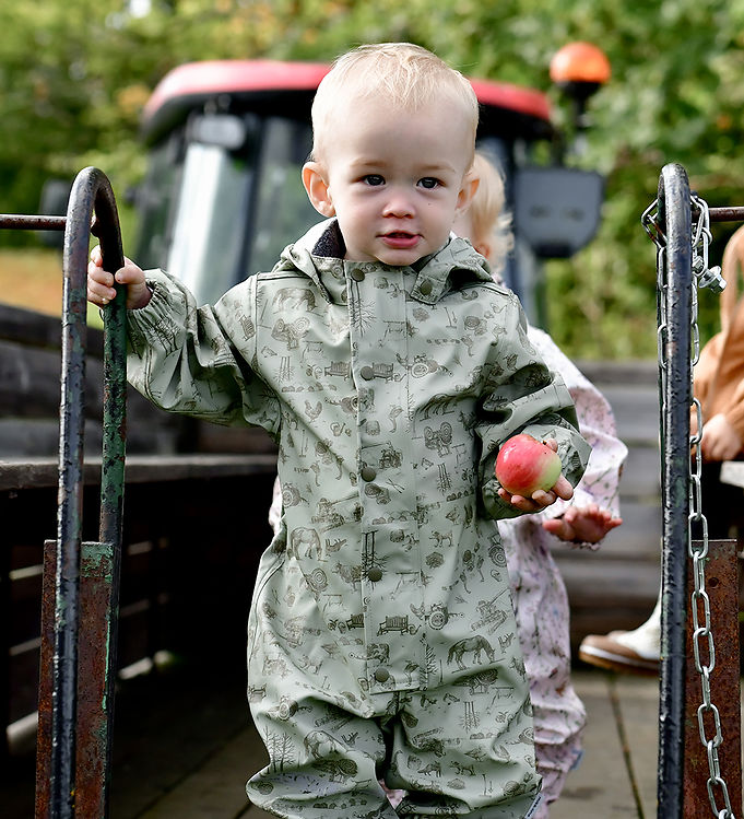 Til begge børn har vi modtaget to lækre regntøjssæt. Til lillebror har vi modtaget den skønneste regndragt i et “dried herb” mønster i en flot grøn farve. Regndragten er str. 86, og vi regner her med, at han kan bruge den til efteråret, når han skal begynde i vuggestue. Regndragten er virkelig lækker i kvaliteten og virker helt perfekt til de små børn, som stadig kravler eller lige har lært at gå. Kraven er foret med blød fleece og giver derfor lidt varme og vindbeskyttelse - jeg har aldrig sæt dette på regntøj før, og jeg synes, det er en super smart detalje!